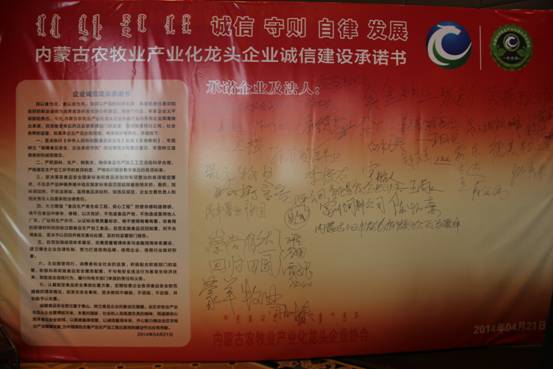 《內(nèi)蒙古農(nóng)牧業(yè)產(chǎn)業(yè)化龍頭企業(yè)誠信建設(shè)承諾書》簽名墻