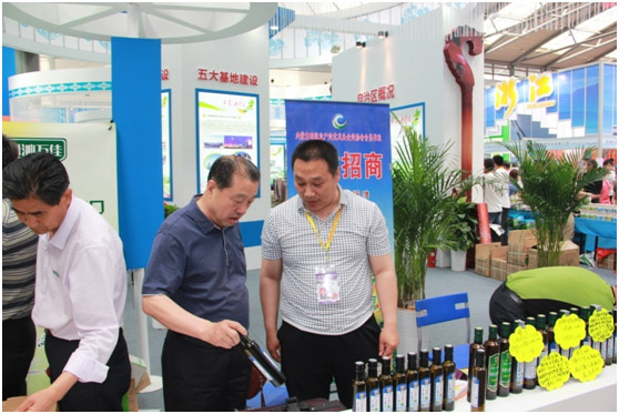 內(nèi)蒙古農(nóng)牧業(yè)廳產(chǎn)業(yè)化處處長王補在與協(xié)會執(zhí)行會長林永亮參觀展位