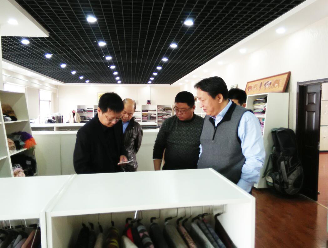 協(xié)會(huì)副會(huì)長(zhǎng)單位、內(nèi)蒙古大盛業(yè)羊絨制品有限公司總經(jīng)理魯耀武為中商所一行介紹企業(yè)情況