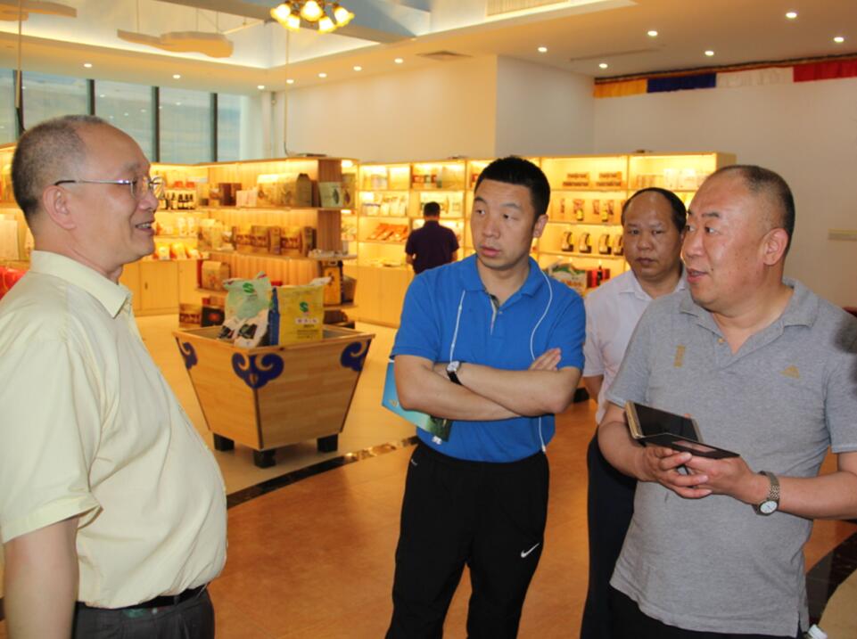 在溫氏集團(tuán)座談會后,考察團(tuán)來到了位于廣州跑馬地的內(nèi)蒙古廣州精品館?!?a name="_GoBack">內(nèi)蒙古綠色農(nóng)畜產(chǎn)品精品館”是內(nèi)蒙古自治區(qū)惠民工程、公益性項(xiàng)目,經(jīng)自治區(qū)政府批準(zhǔn),按照“自治區(qū)政府扶持、市場化運(yùn)作、企業(yè)化管理”的管理模式,由內(nèi)蒙古自治區(qū)農(nóng)牧業(yè)廳主辦,協(xié)會會員單位、內(nèi)蒙古草原鑫河食品有限公司承辦的在珠三角地區(qū)最大的內(nèi)蒙古綠色優(yōu)質(zhì)農(nóng)畜產(chǎn)品展銷中心,是集產(chǎn)品展示、體驗(yàn)、推廣為一體的商業(yè)平臺。