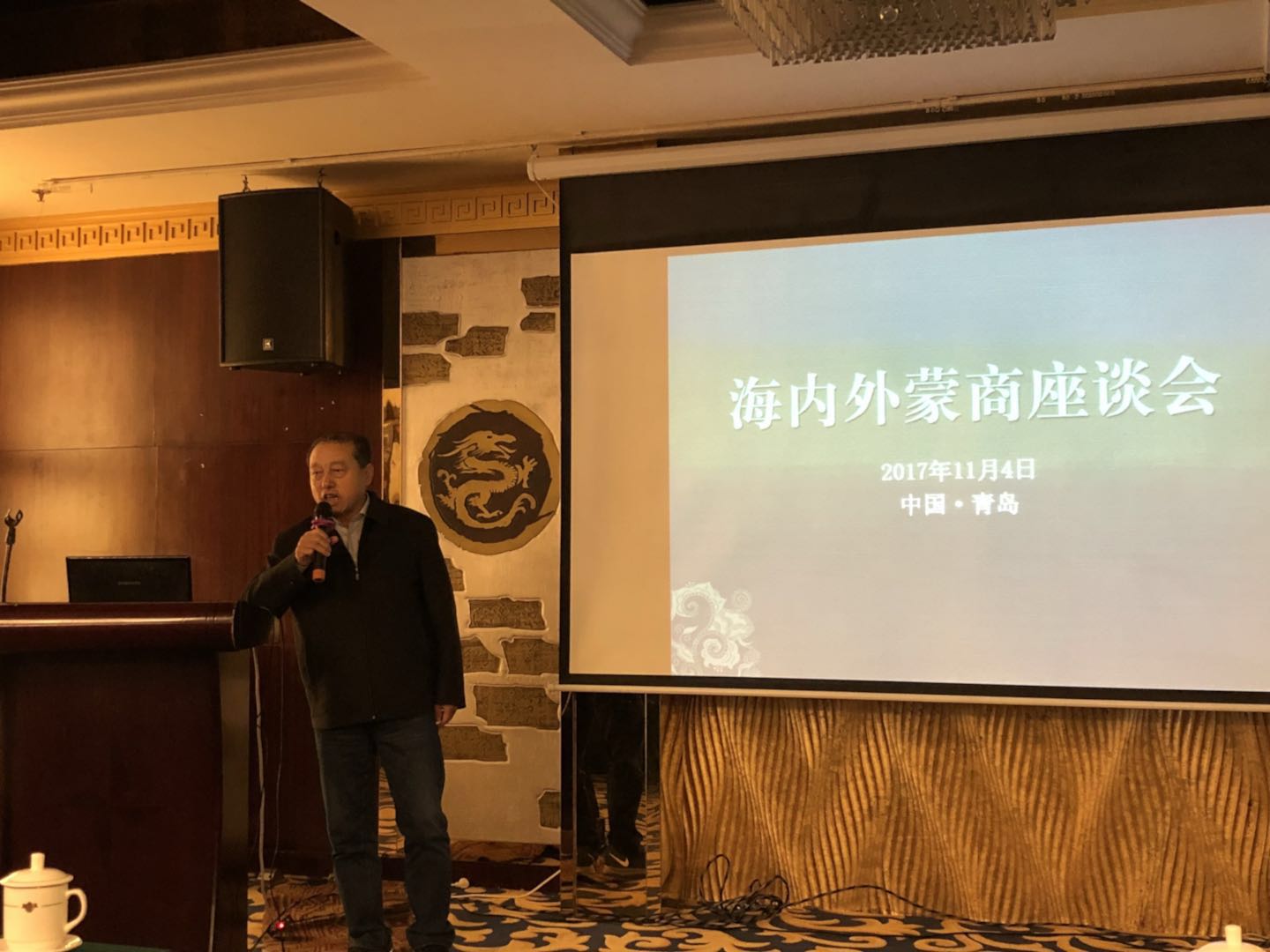 11月4日在青島花園酒店迎來了海內(nèi)外蒙商座談會,各省市內(nèi)蒙古商會會長交流分享經(jīng)驗,貢獻(xiàn)商機(jī),并由近十位山東內(nèi)蒙古商會代表進(jìn)行了項目路演。林永亮執(zhí)行會長在座談會上講到,全國各地蒙商會對于內(nèi)蒙古文化、產(chǎn)品和精神的傳播功不可沒,對內(nèi)蒙古綠色農(nóng)畜產(chǎn)品生產(chǎn)加工輸出基地建設(shè)作出了巨大的貢獻(xiàn),希望各地的蒙商會能積極引進(jìn)投資和資金,宣傳內(nèi)蒙古民族產(chǎn)品和民族精神,為內(nèi)蒙古農(nóng)牧業(yè)插上資本和技術(shù)的翅膀,助力內(nèi)蒙古經(jīng)濟(jì)騰飛。