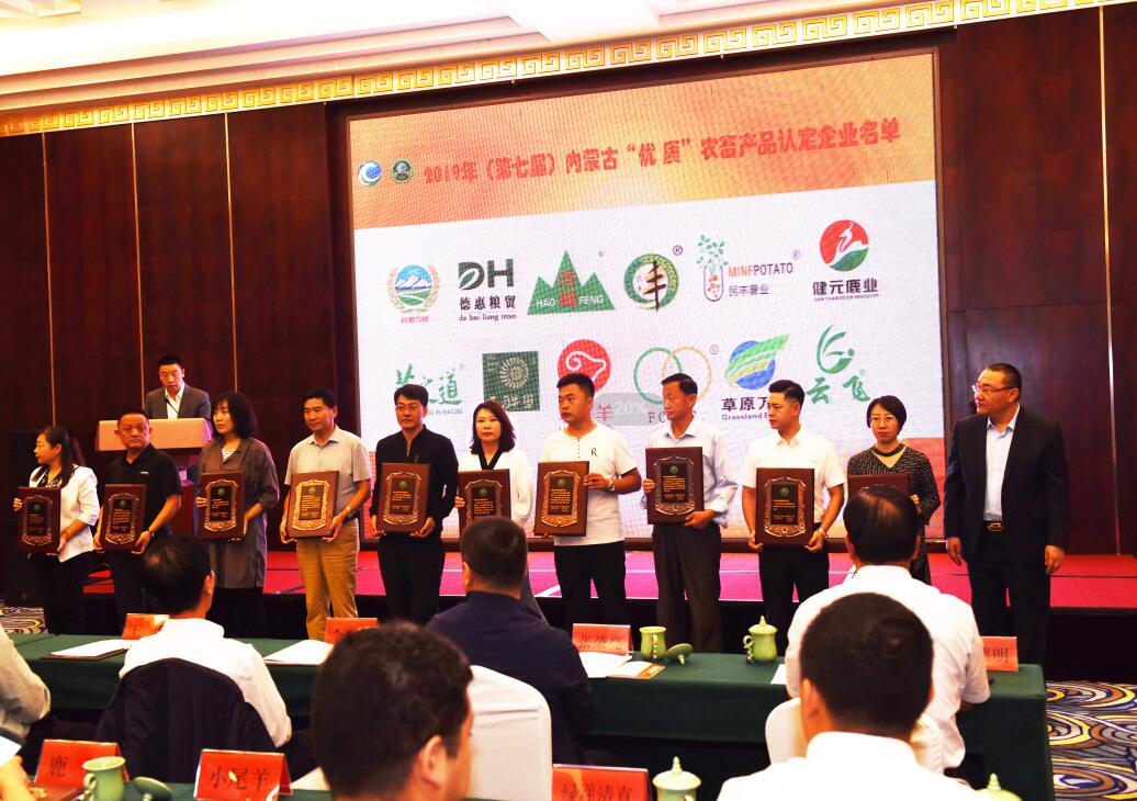 會(huì)議現(xiàn)場(chǎng)揭曉了第七屆內(nèi)蒙古“名優(yōu)特”農(nóng)畜產(chǎn)品成果并進(jìn)行了頒獎(jiǎng)儀式。協(xié)會(huì)于今年5月初啟動(dòng)名優(yōu)特農(nóng)畜產(chǎn)品認(rèn)定工作,經(jīng)過(guò)企業(yè)在線自主申報(bào)、材料初審、專家評(píng)審、實(shí)地考察、評(píng)審委員會(huì)確認(rèn)、公示公告六個(gè)環(huán)節(jié),最終確定了本屆名優(yōu)特農(nóng)畜產(chǎn)品認(rèn)定名單,58家企業(yè)的199款產(chǎn)品分別被認(rèn)定為“名優(yōu)特”、“優(yōu)質(zhì)”、“特色”產(chǎn)品,其中14家企業(yè)的51個(gè)產(chǎn)品為“名優(yōu)特”農(nóng)畜產(chǎn)品,25家企業(yè)的85個(gè)產(chǎn)品為“優(yōu)質(zhì)”農(nóng)畜產(chǎn)品,25家企業(yè)的63個(gè)產(chǎn)品為“特色”農(nóng)畜產(chǎn)品。