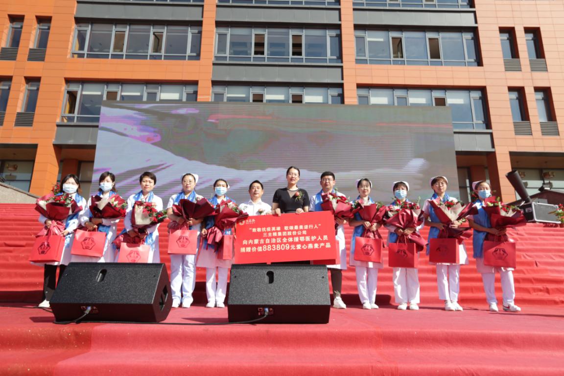 面對突如其來的疫情,無數(shù)醫(yī)護人員挺身而出,內蒙古自治區(qū)共派出849名醫(yī)護人員參與援鄂行動,為了向抗疫英雄致敬,三主糧集團在開幕式現(xiàn)場舉行了捐贈儀式,向內蒙古援鄂醫(yī)護人員捐贈了價值88.3809萬元的三主糧燕麥產品。