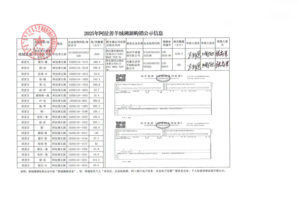 2025年阿拉善羊絨溯源購(gòu)銷(xiāo)公示信息
