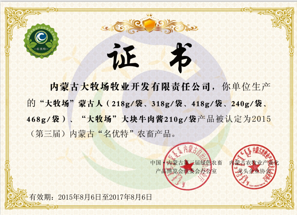 內(nèi)蒙古大牧場牧業(yè)集團,從2005年創(chuàng)業(yè)至今,始終致力于開發(fā)內(nèi)蒙古大草原優(yōu)質(zhì)的牛羊資源,堅持打造基于食品安全管理閉環(huán)運行的“全產(chǎn)業(yè)鏈 全程溯源”的牛羊肉產(chǎn)業(yè)鏈,目前已實現(xiàn)從牧場養(yǎng)殖、屠宰、精加工、連鎖專賣系統(tǒng)、電子商務拓展全覆蓋,集團化、品牌化發(fā)展。     大牧場擁有...