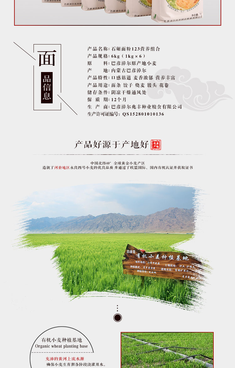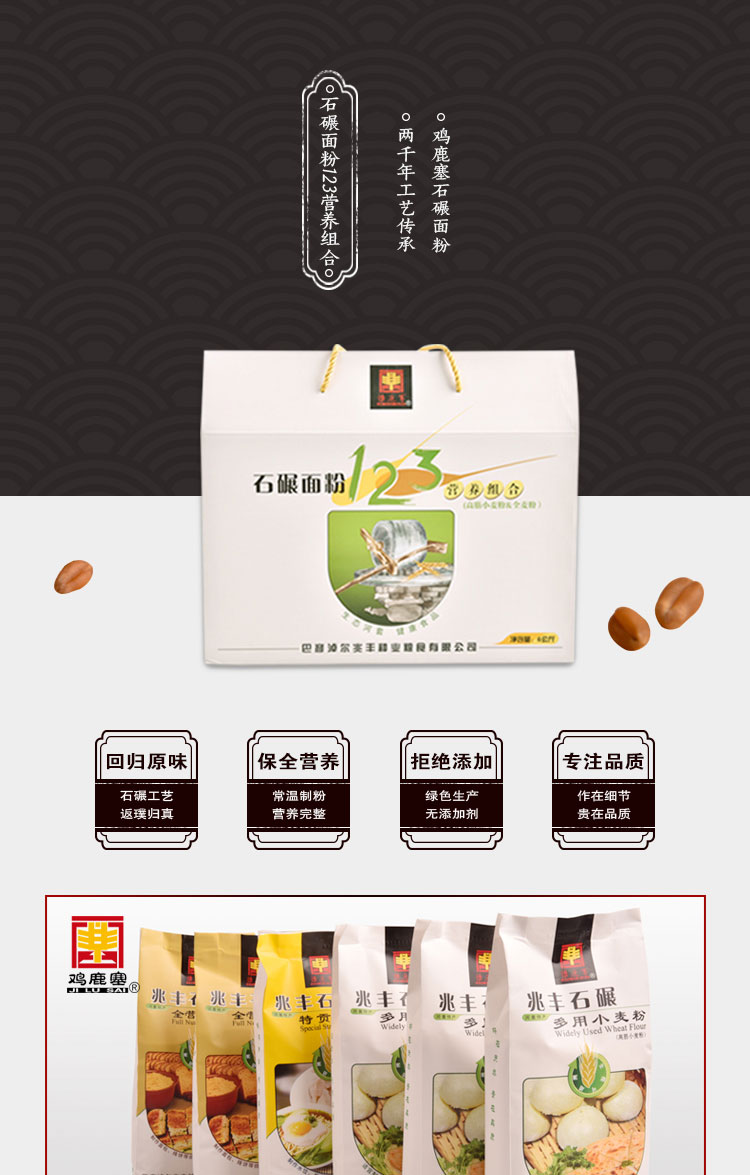 雞鹿塞 石碾面粉123營養(yǎng)組合 禮盒 6kg 河套高筋面粉 禮盒