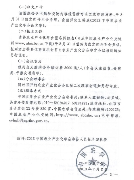 關于召開“2013中國農業(yè)產業(yè)化年會暨中國農業(yè)企業(yè)家論壇”的通知