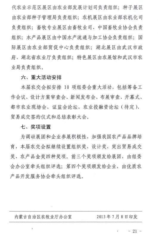 關于印發(fā)內(nèi)蒙古自治區(qū)參加第十一屆中國國際農(nóng)產(chǎn)品交易會工作方案的通知