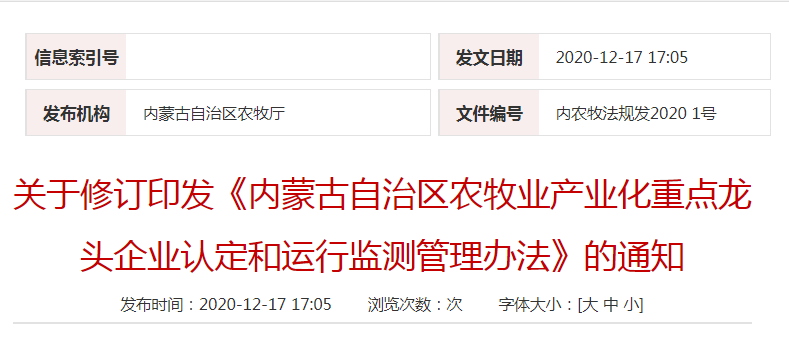 信息來源于:內(nèi)蒙古自治區(qū)農(nóng)牧廳鏈接地址:http://nmt.nmg.gov.cn/gk/zfxxgk/xxgkml/xztz/202012/t20201217_177842.html